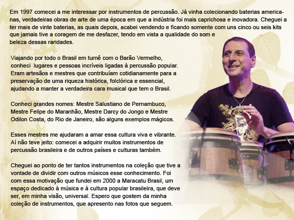 Foi viajando por todo o Brasil que conheci muita gente boa ligada a percussão popular brasileira. Os mestres me ajudaram a amar essa cultura viva e vibrante.
